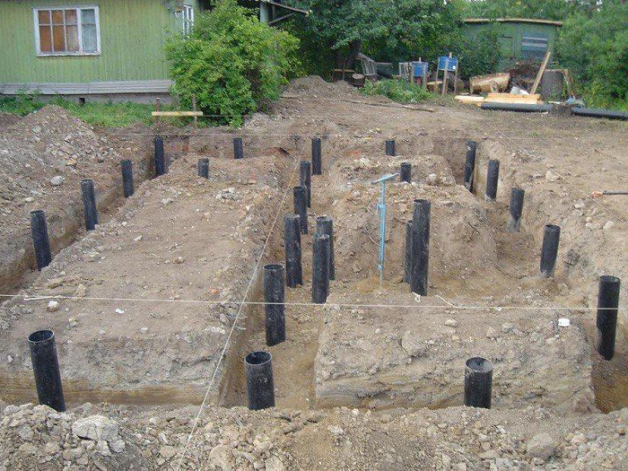 Фундамент этого типа подходит для всех типов грунта, в том числе для песчаных и глинистых почв, при большом содержании мусора или щебня, а также при наличии значительного перепада рельефа и при неглубоком залегании грунтовых вод.